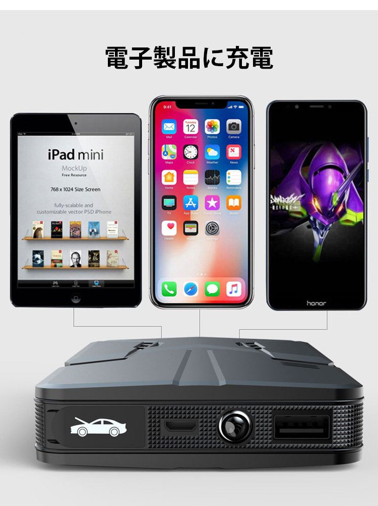 新作通用版車用ジャンプスターター、操作簡単、接続するだけで瞬間に車が起動
