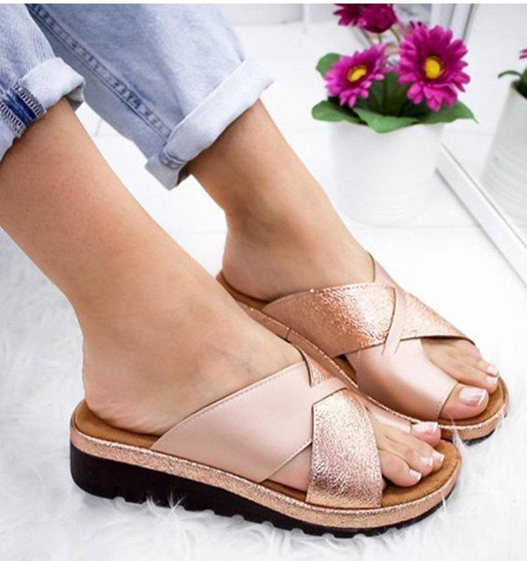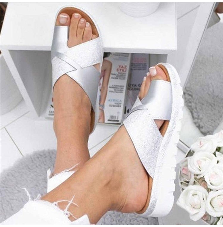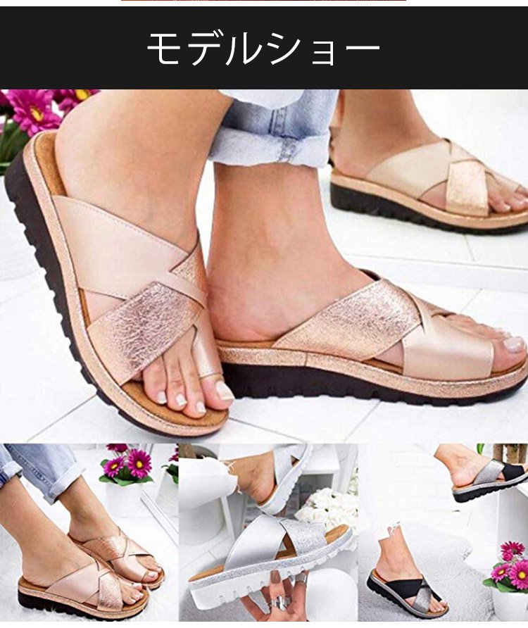 【外反母趾対策サンダル】柔らかい、ラウンドトゥ、牛革、 ウェッジソール、履き心地が快適
